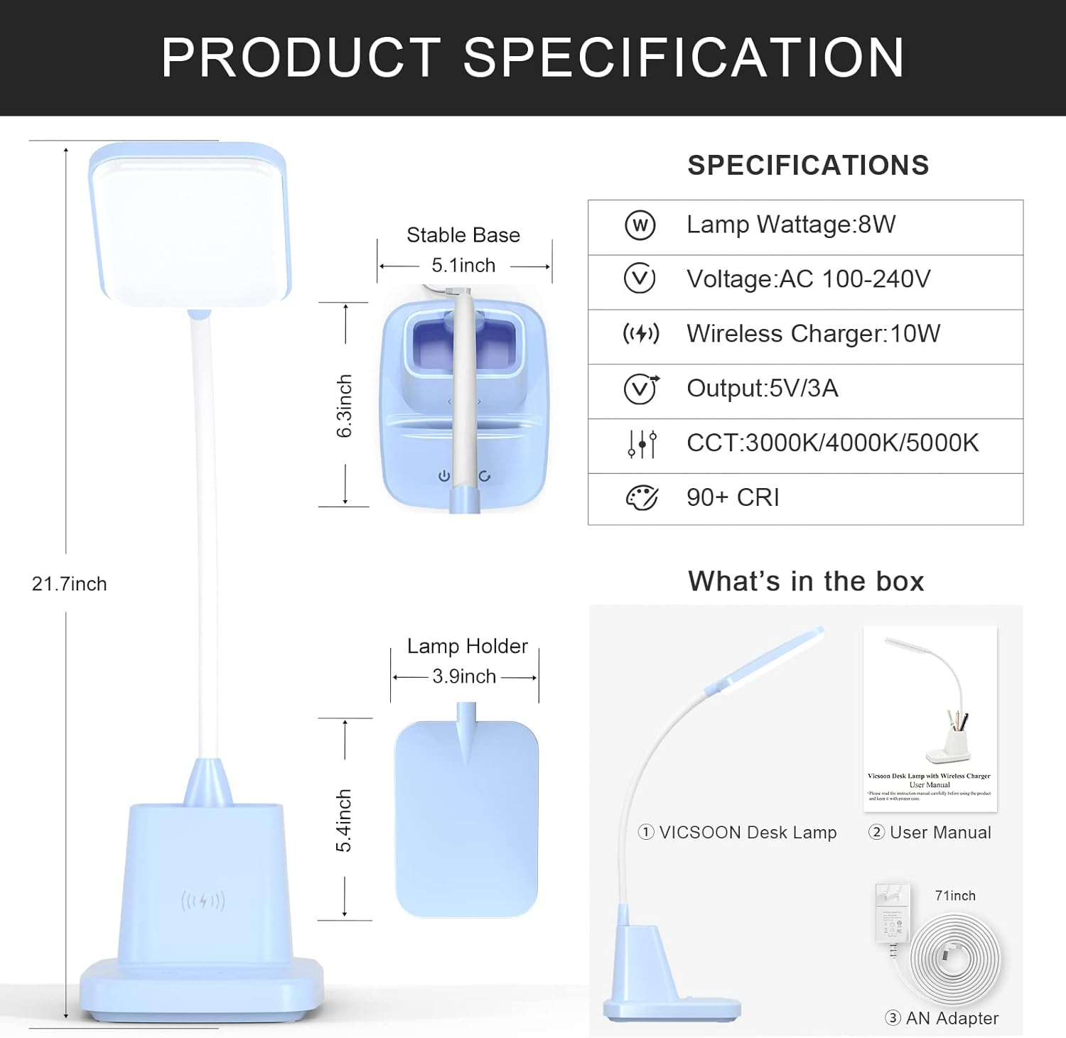 | Included Components | Desk Lamp, Power Cable, User Manual |