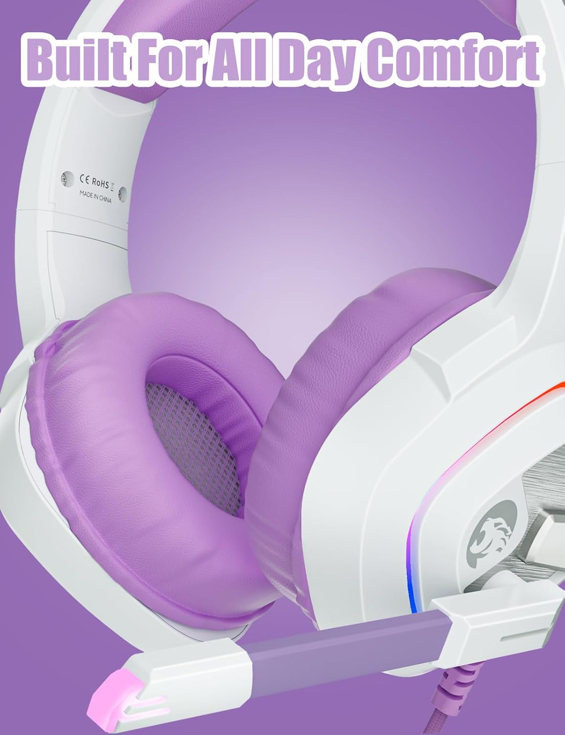 • 【HUMANIZED DESIGN】Lightweight design, breathable protein over-ear pads, and flexible headband with thickening pads, provide a long & comfortable gaming session, suitable for different head shapes.